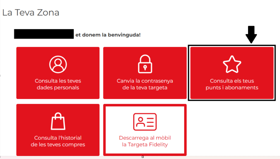 - Un cop dins, fes clic a Consulta els teus punts i abonaments per veure el saldo actual i l’historial.